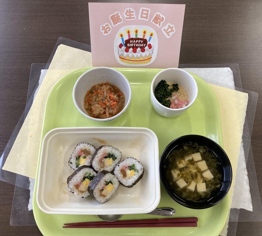 ・巻き寿司 ・茶碗蒸し ・大根の和え物 ・お吸い物 ・デザート