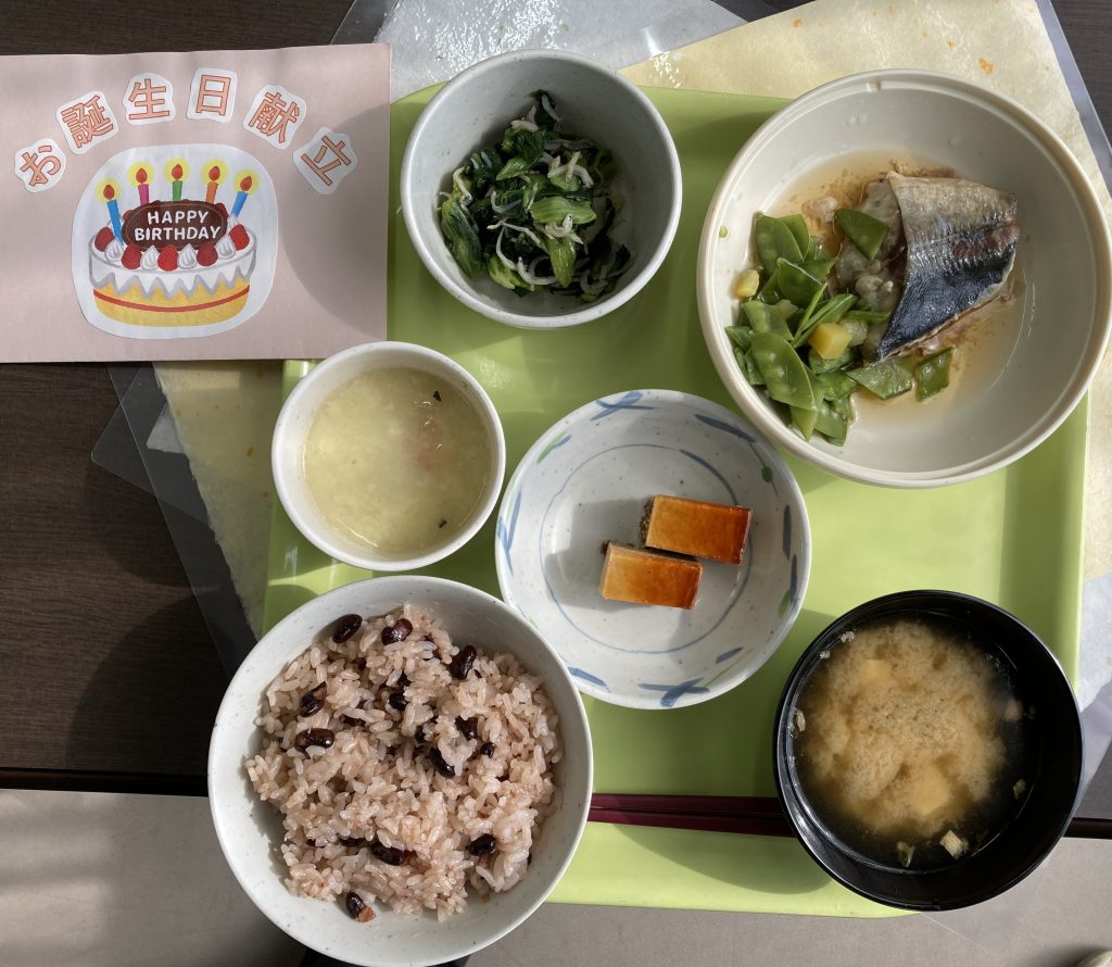 ・赤飯 ・あじの煮付け ・茶碗蒸し ・しろなのしらす和え